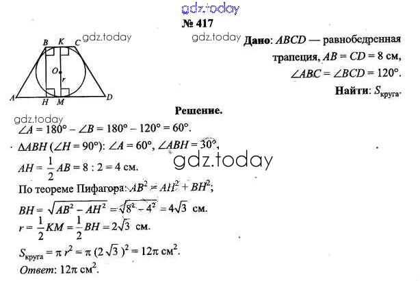Ответы к Решение к задачам 417 Учебнику по Геометрии для 9 класса Шлыков Народная асвета 2012