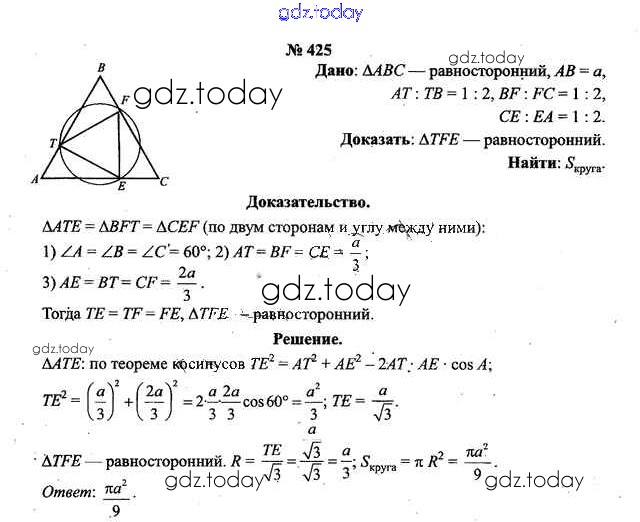 Ответы к Решение к задачам 425 Учебнику по Геометрии для 9 класса Шлыков Народная асвета 2012