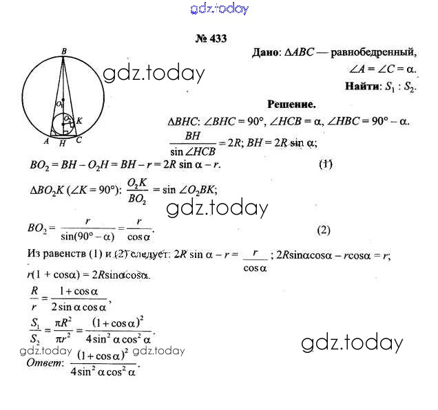 Ответы к Решение к задачам 433 Учебнику по Геометрии для 9 класса Шлыков Народная асвета 2012