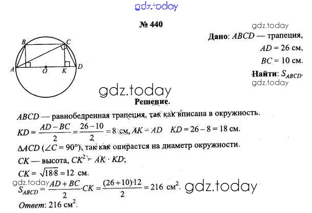 На страницах сайта gdz.today вы найдете учебный и вспомогательный материал, направленный на улучшения знаний школьной программы. ГДЗ - онлайн мир знаний Решение к задачам 440 Учебнику по Геометрии для 9 класса Шлыков Народная асвета 2012