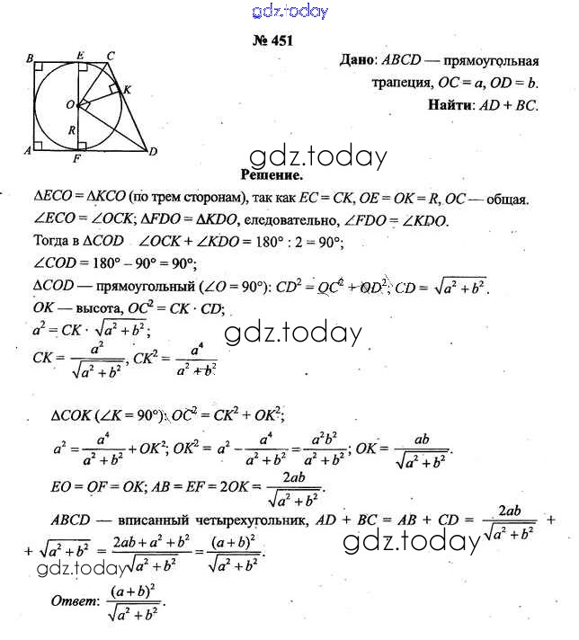 Ответы к Решение к задачам 451 Учебнику по Геометрии для 9 класса Шлыков Народная асвета 2012