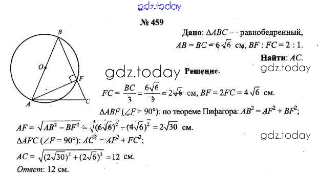 Ответы к Решение к задачам 459 Учебнику по Геометрии для 9 класса Шлыков Народная асвета 2012