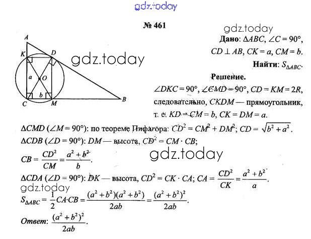 Ответы к Решение к задачам 461 Учебнику по Геометрии для 9 класса Шлыков Народная асвета 2012