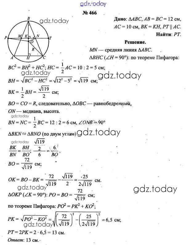Ответы к Решение к задачам 466 Учебнику по Геометрии для 9 класса Шлыков Народная асвета 2012