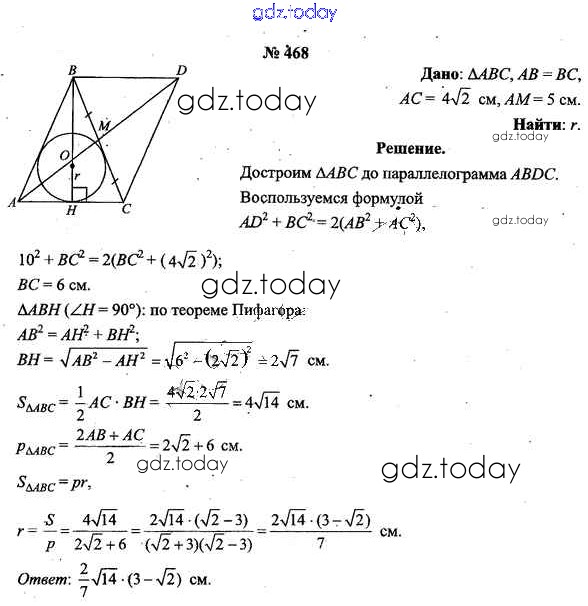 На страницах сайта gdz.today вы найдете учебный и вспомогательный материал, направленный на улучшения знаний школьной программы. ГДЗ - онлайн мир знаний Решение к задачам 468 Учебнику по Геометрии для 9 класса Шлыков Народная асвета 2012