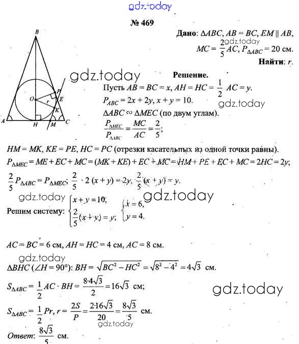 Ответы к Решение к задачам 469 Учебнику по Геометрии для 9 класса Шлыков Народная асвета 2012