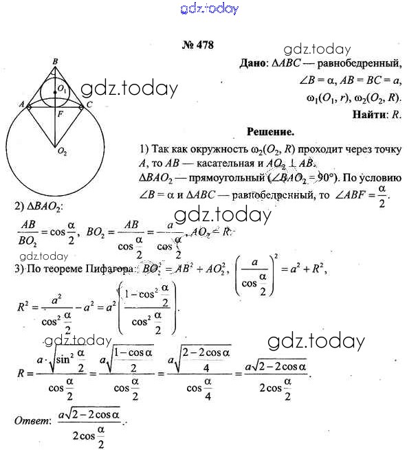 Ответы к Решение к задачам 478 Учебнику по Геометрии для 9 класса Шлыков Народная асвета 2012