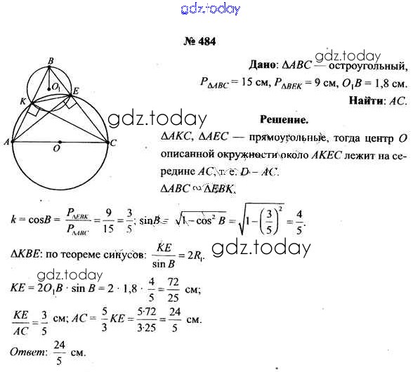 Ответы к Решение к задачам 484 Учебнику по Геометрии для 9 класса Шлыков Народная асвета 2012