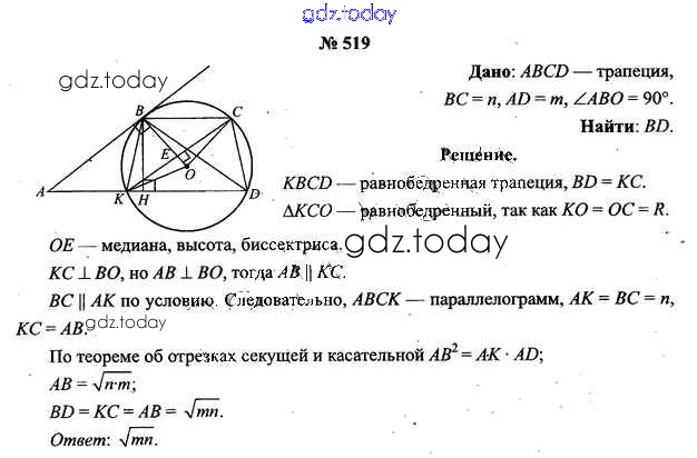 Ответы к Решение к задачам 519 Учебнику по Геометрии для 9 класса Шлыков Народная асвета 2012