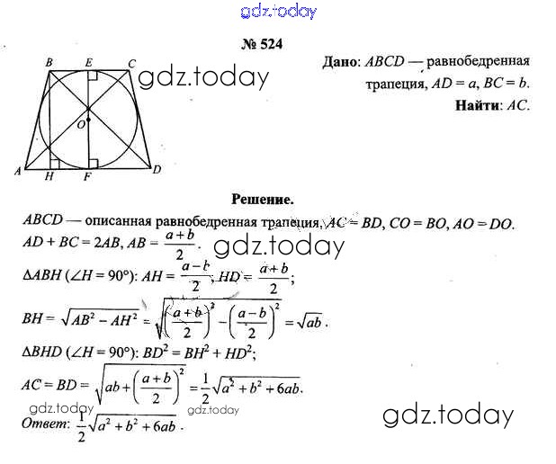 Ответы к Решение к задачам 524 Учебнику по Геометрии для 9 класса Шлыков Народная асвета 2012