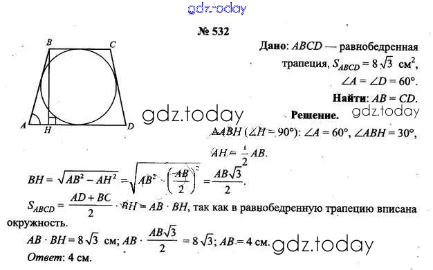 Ответы к Решение к задачам 532 Учебнику по Геометрии для 9 класса Шлыков Народная асвета 2012