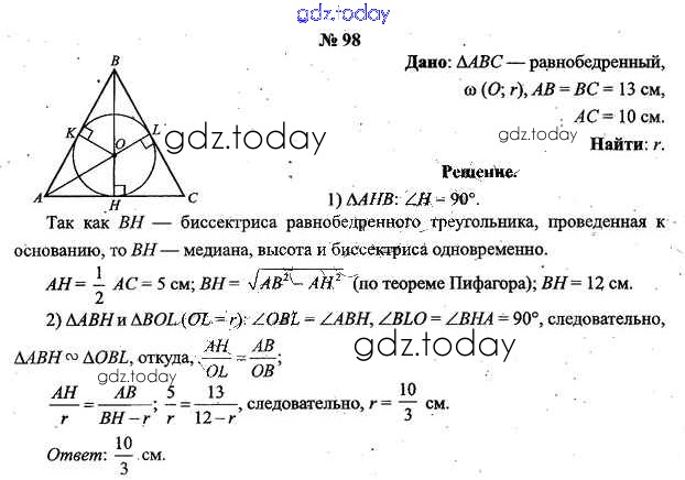 Ответы к Решение к задачам 98 Учебнику по Геометрии для 9 класса Шлыков Народная асвета 2012