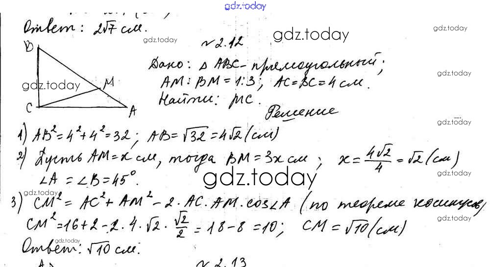 Ответы к §2 Решение к главе 1. Решение треугольников 2.12 Учебнику по Геометрии для 9 класса Мерзляк, Поляков Углубленный уровень Вентана-граф 2019