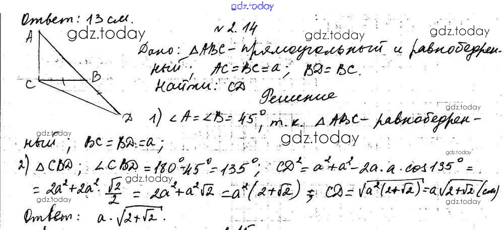 Ответы к §2 Решение к главе 1. Решение треугольников 2.14 Учебнику по Геометрии для 9 класса Мерзляк, Поляков Углубленный уровень Вентана-граф 2019