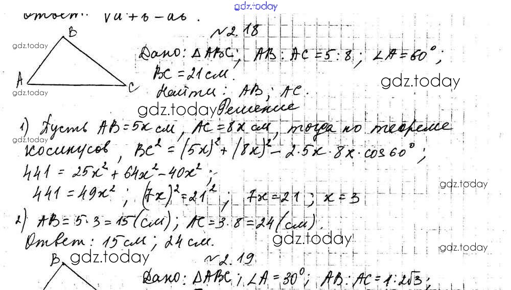 Ответы к §2 Решение к главе 1. Решение треугольников 2.18 Учебнику по Геометрии для 9 класса Мерзляк, Поляков Углубленный уровень Вентана-граф 2019