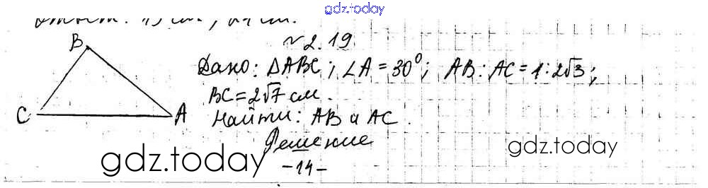 Ответы к §2 Решение к главе 1. Решение треугольников 2.19 Учебнику по Геометрии для 9 класса Мерзляк, Поляков Углубленный уровень Вентана-граф 2019