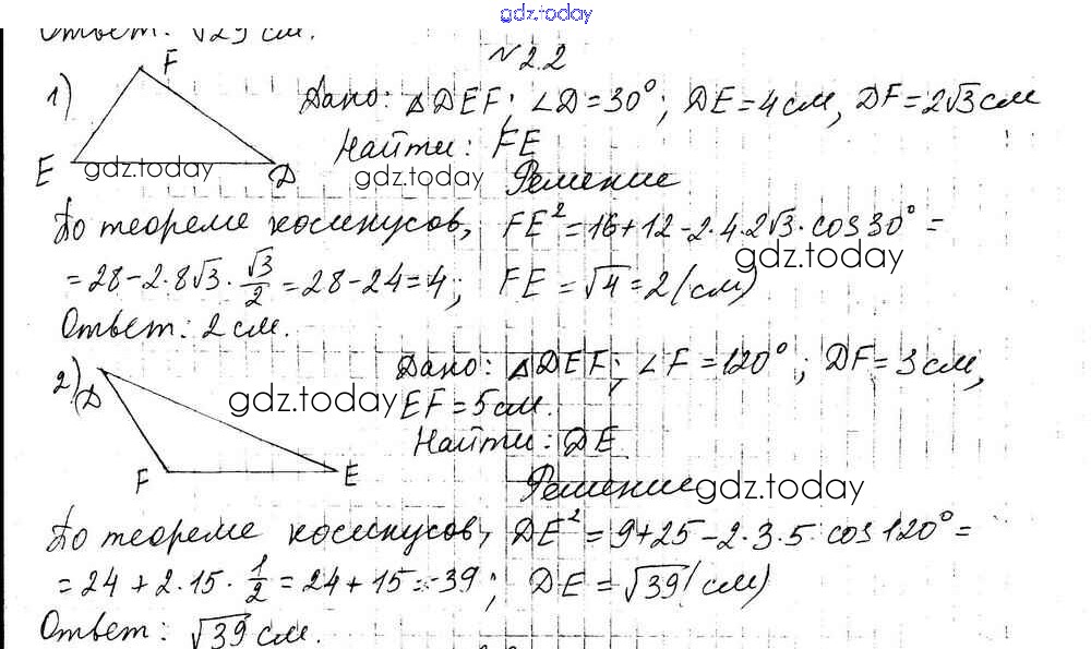 Ответы к §2 Решение к главе 1. Решение треугольников 2.2 Учебнику по Геометрии для 9 класса Мерзляк, Поляков Углубленный уровень Вентана-граф 2019