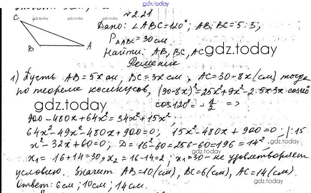 Ответы к §2 Решение к главе 1. Решение треугольников 2.21 Учебнику по Геометрии для 9 класса Мерзляк, Поляков Углубленный уровень Вентана-граф 2019