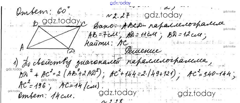 Ответы к §2 Решение к главе 1. Решение треугольников 2.27 Учебнику по Геометрии для 9 класса Мерзляк, Поляков Углубленный уровень Вентана-граф 2019