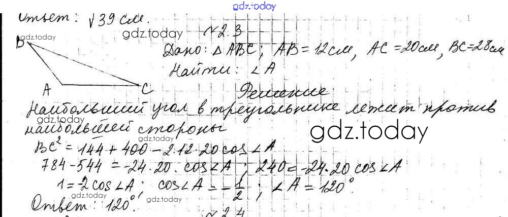 Ответы к §2 Решение к главе 1. Решение треугольников 2.3 Учебнику по Геометрии для 9 класса Мерзляк, Поляков Углубленный уровень Вентана-граф 2019