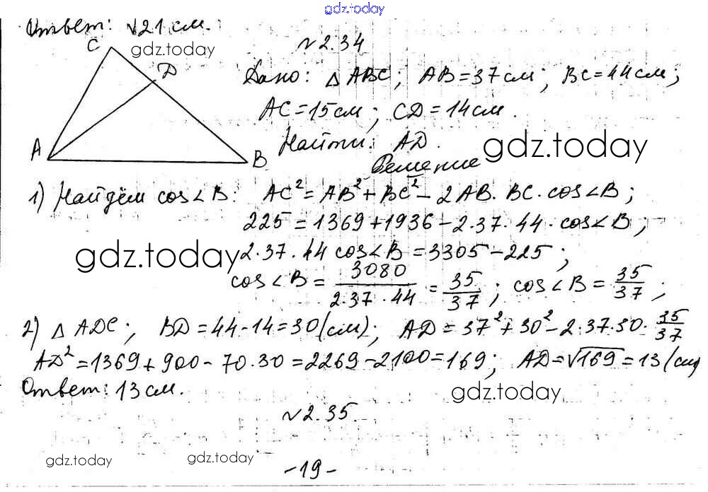 Ответы к §2 Решение к главе 1. Решение треугольников 2.34 Учебнику по Геометрии для 9 класса Мерзляк, Поляков Углубленный уровень Вентана-граф 2019