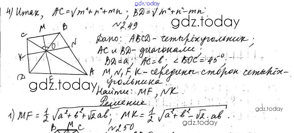 Ответы к §2 Решение к главе 1. Решение треугольников 2.49 Учебнику по Геометрии для 9 класса Мерзляк, Поляков Углубленный уровень Вентана-граф 2019