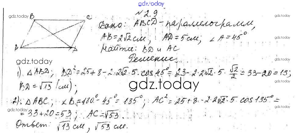 Ответы к §2 Решение к главе 1. Решение треугольников 2.9 Учебнику по Геометрии для 9 класса Мерзляк, Поляков Углубленный уровень Вентана-граф 2019