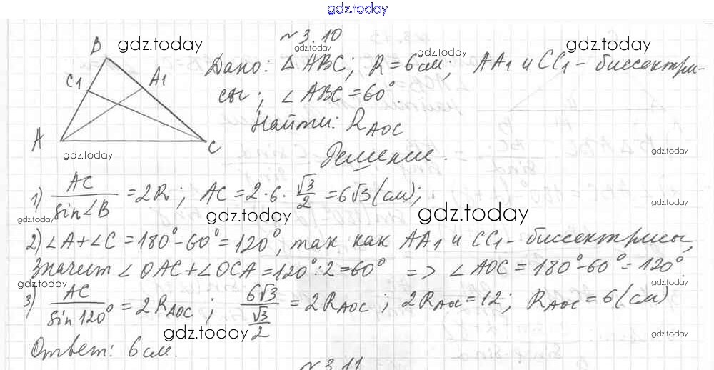 Ответы к §3 Решение к главе 1. Решение треугольников 3.10 Учебнику по Геометрии для 9 класса Мерзляк, Поляков Углубленный уровень Вентана-граф 2019