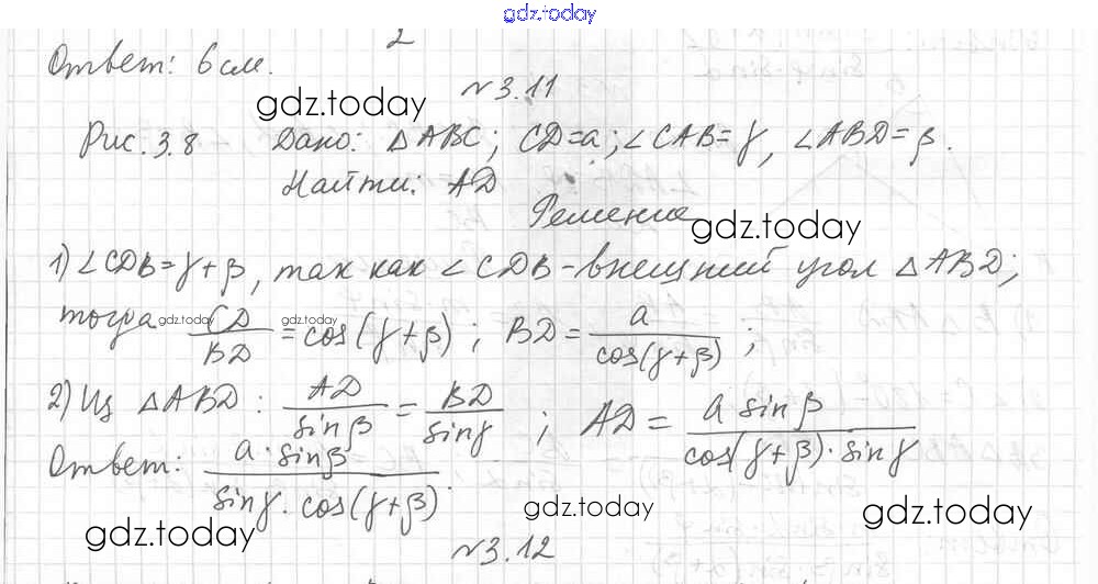 Ответы к §3 Решение к главе 1. Решение треугольников 3.11 Учебнику по Геометрии для 9 класса Мерзляк, Поляков Углубленный уровень Вентана-граф 2019