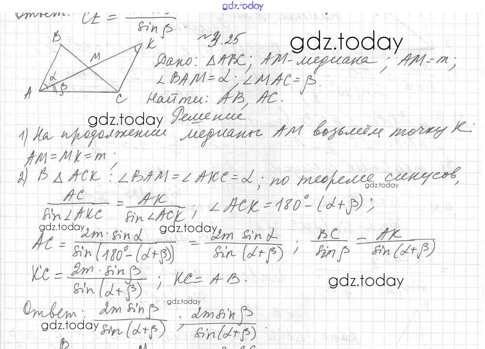 Ответы к §3 Решение к главе 1. Решение треугольников 3.25 Учебнику по Геометрии для 9 класса Мерзляк, Поляков Углубленный уровень Вентана-граф 2019