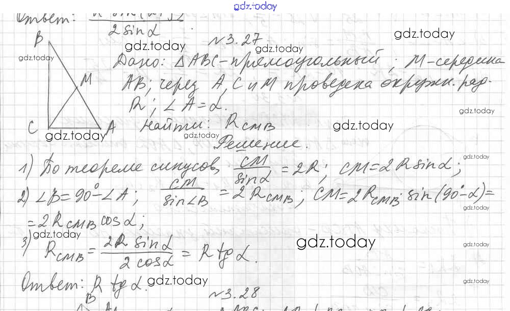 Ответы к §3 Решение к главе 1. Решение треугольников 3.27 Учебнику по Геометрии для 9 класса Мерзляк, Поляков Углубленный уровень Вентана-граф 2019