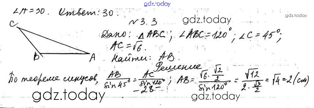 Ответы к §3 Решение к главе 1. Решение треугольников 3.3 Учебнику по Геометрии для 9 класса Мерзляк, Поляков Углубленный уровень Вентана-граф 2019