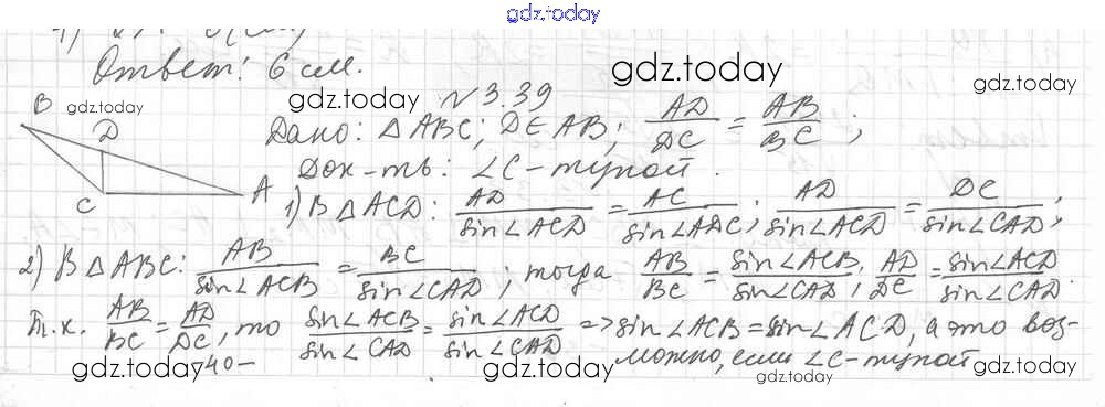 Ответы к §3 Решение к главе 1. Решение треугольников 3.39 Учебнику по Геометрии для 9 класса Мерзляк, Поляков Углубленный уровень Вентана-граф 2019