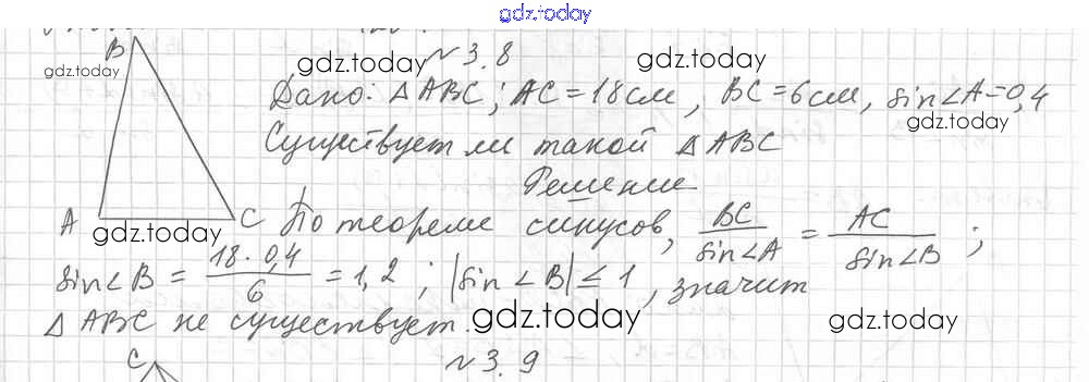 Ответы к §3 Решение к главе 1. Решение треугольников 3.8 Учебнику по Геометрии для 9 класса Мерзляк, Поляков Углубленный уровень Вентана-граф 2019