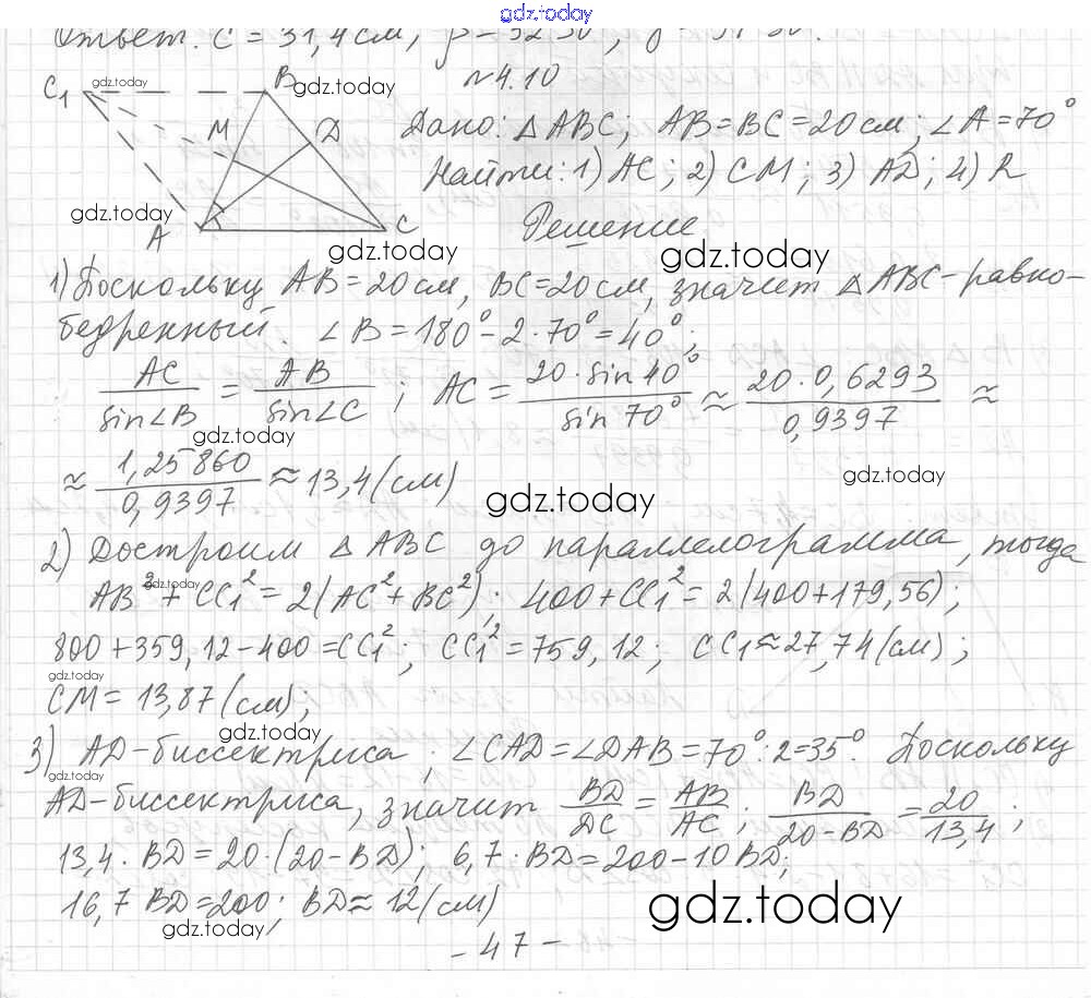 Ответы к §4 Решение к главе 1. Решение треугольников 4.10 Учебнику по Геометрии для 9 класса Мерзляк, Поляков Углубленный уровень Вентана-граф 2019