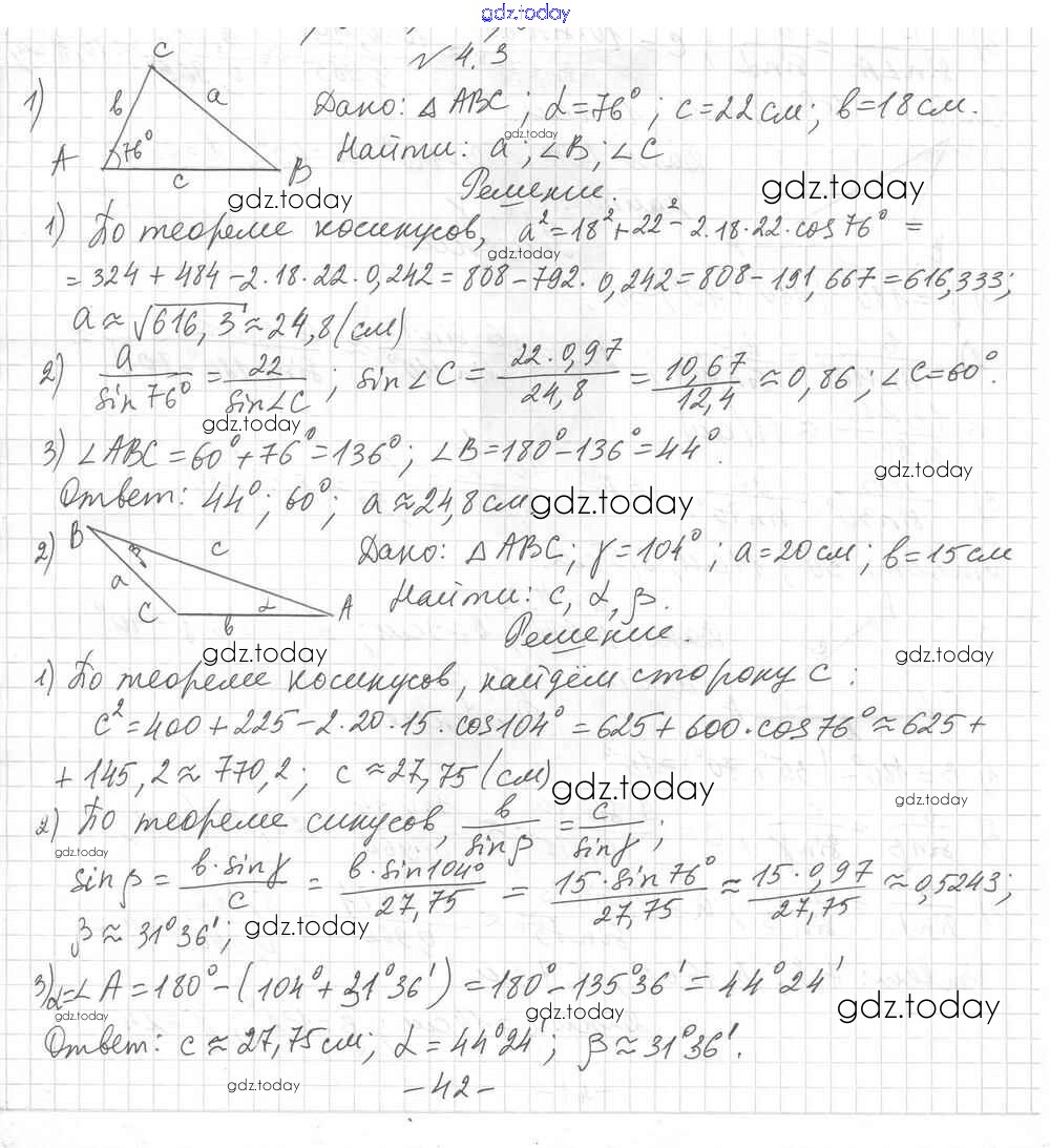Ответы к §4 Решение к главе 1. Решение треугольников 4.3 Учебнику по Геометрии для 9 класса Мерзляк, Поляков Углубленный уровень Вентана-граф 2019