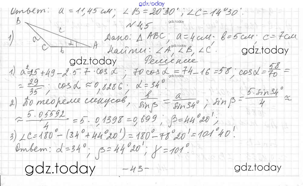 Ответы к §4 Решение к главе 1. Решение треугольников 4.5 Учебнику по Геометрии для 9 класса Мерзляк, Поляков Углубленный уровень Вентана-граф 2019
