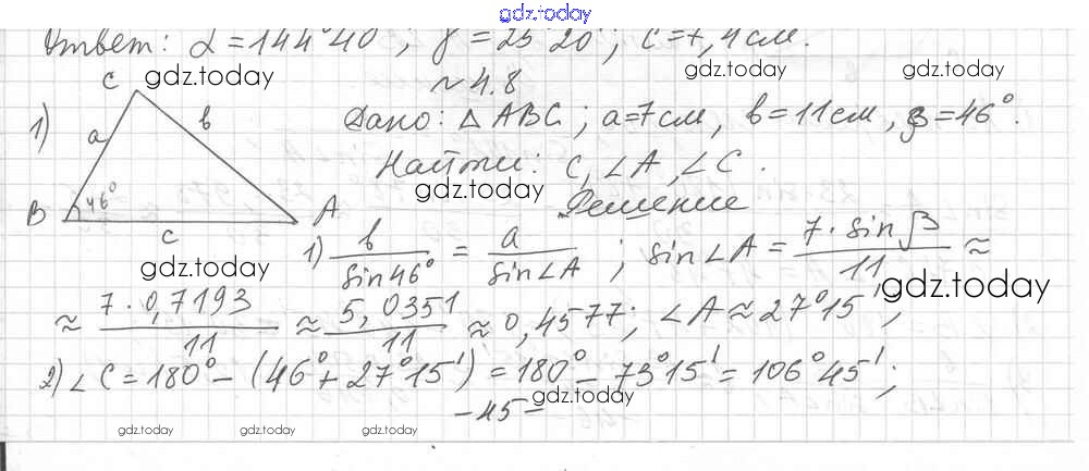 Ответы к §4 Решение к главе 1. Решение треугольников 4.8 Учебнику по Геометрии для 9 класса Мерзляк, Поляков Углубленный уровень Вентана-граф 2019