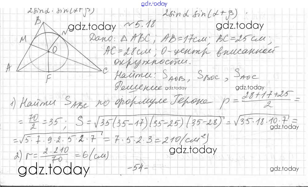 Ответы к §5 Решение к главе 1. Решение треугольников 5.18 Учебнику по Геометрии для 9 класса Мерзляк, Поляков Углубленный уровень Вентана-граф 2019