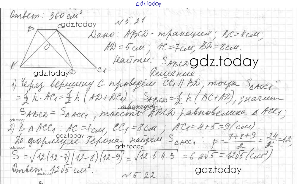 Ответы к §5 Решение к главе 1. Решение треугольников 5.21 Учебнику по Геометрии для 9 класса Мерзляк, Поляков Углубленный уровень Вентана-граф 2019