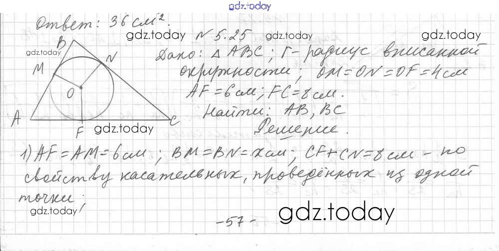Ответы к §5 Решение к главе 1. Решение треугольников 5.25 Учебнику по Геометрии для 9 класса Мерзляк, Поляков Углубленный уровень Вентана-граф 2019