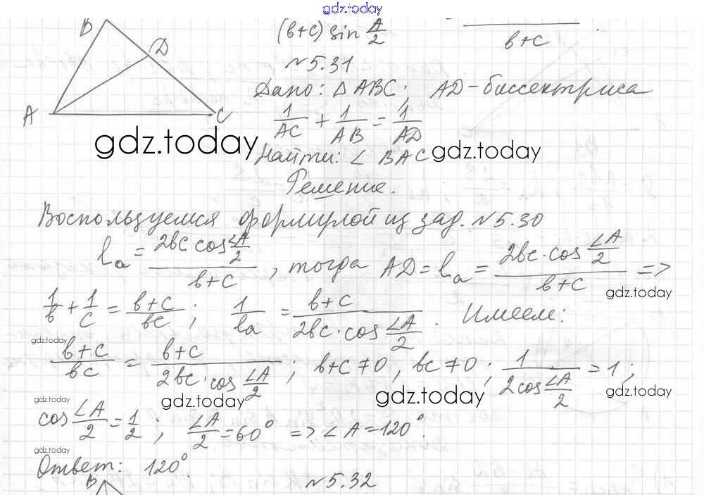 Ответы к §5 Решение к главе 1. Решение треугольников 5.31 Учебнику по Геометрии для 9 класса Мерзляк, Поляков Углубленный уровень Вентана-граф 2019