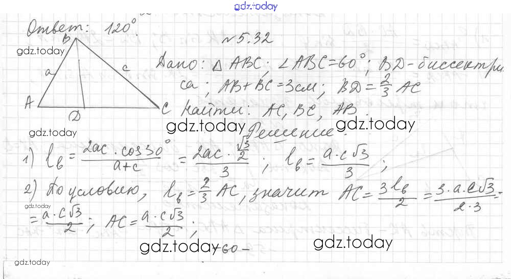Ответы к §5 Решение к главе 1. Решение треугольников 5.32 Учебнику по Геометрии для 9 класса Мерзляк, Поляков Углубленный уровень Вентана-граф 2019