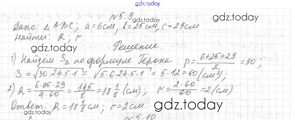 Ответы к §5 Решение к главе 1. Решение треугольников 5.9 Учебнику по Геометрии для 9 класса Мерзляк, Поляков Углубленный уровень Вентана-граф 2019