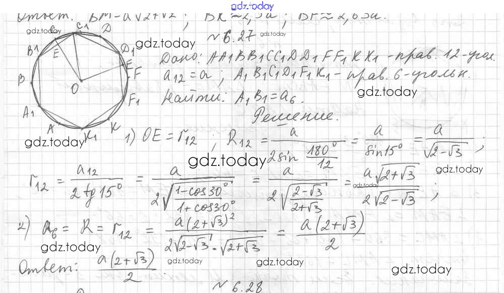 Ответы к §6 Решение к главе 2. Правильные многоугольники 6.27 Учебнику по Геометрии для 9 класса Мерзляк, Поляков Углубленный уровень Вентана-граф 2019