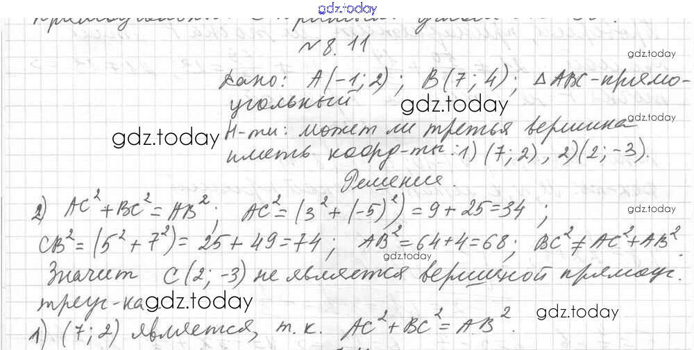 Ответы к §8 Решение к главе 3. Декартовы координаты на плоскости 8.11 Учебнику по Геометрии для 9 класса Мерзляк, Поляков Углубленный уровень Вентана-граф 2019