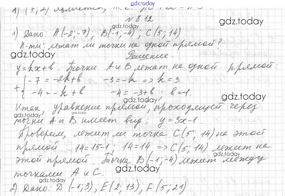 Ответы к §8 Решение к главе 3. Декартовы координаты на плоскости 8.12 Учебнику по Геометрии для 9 класса Мерзляк, Поляков Углубленный уровень Вентана-граф 2019