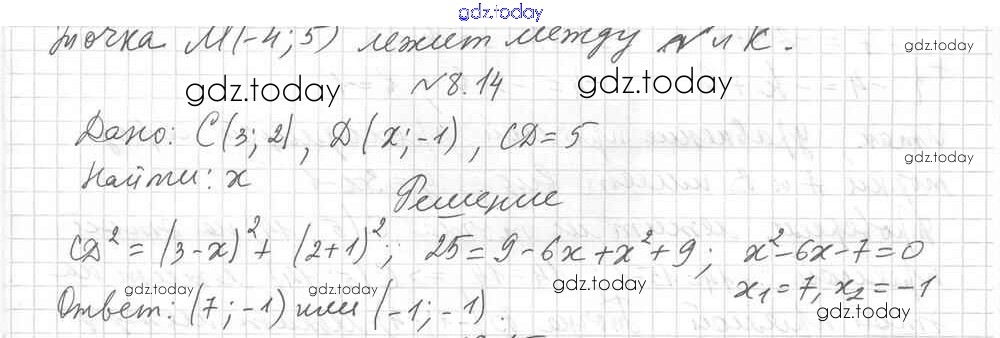 Ответы к §8 Решение к главе 3. Декартовы координаты на плоскости 8.14 Учебнику по Геометрии для 9 класса Мерзляк, Поляков Углубленный уровень Вентана-граф 2019