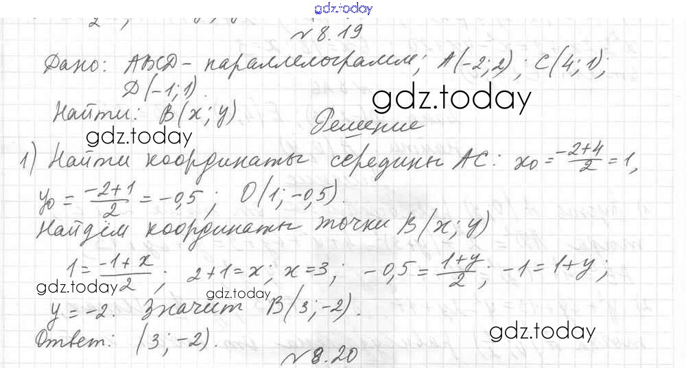 Ответы к §8 Решение к главе 3. Декартовы координаты на плоскости 8.19 Учебнику по Геометрии для 9 класса Мерзляк, Поляков Углубленный уровень Вентана-граф 2019