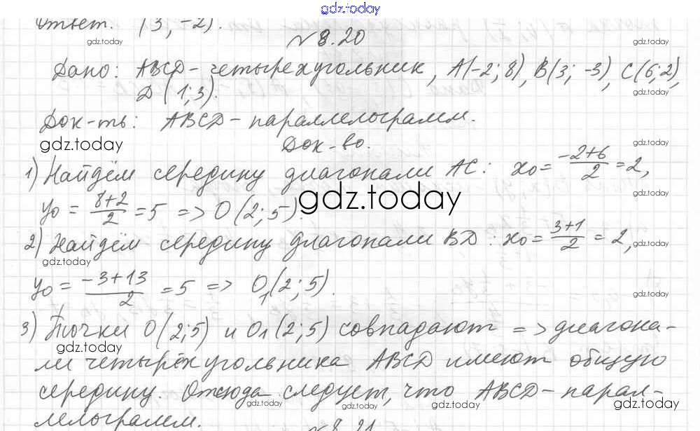 Ответы к §8 Решение к главе 3. Декартовы координаты на плоскости 8.20 Учебнику по Геометрии для 9 класса Мерзляк, Поляков Углубленный уровень Вентана-граф 2019